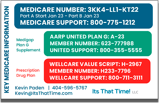 That's why we created THE CONVENIENCE CARD personalized for you. It has the key info for all your plans, including your member number, the plan name and the carrier member services phone number all amalgamated onto one long lasting “credit card style” card. There is even important added information, such as dates you need to know, on the back.
